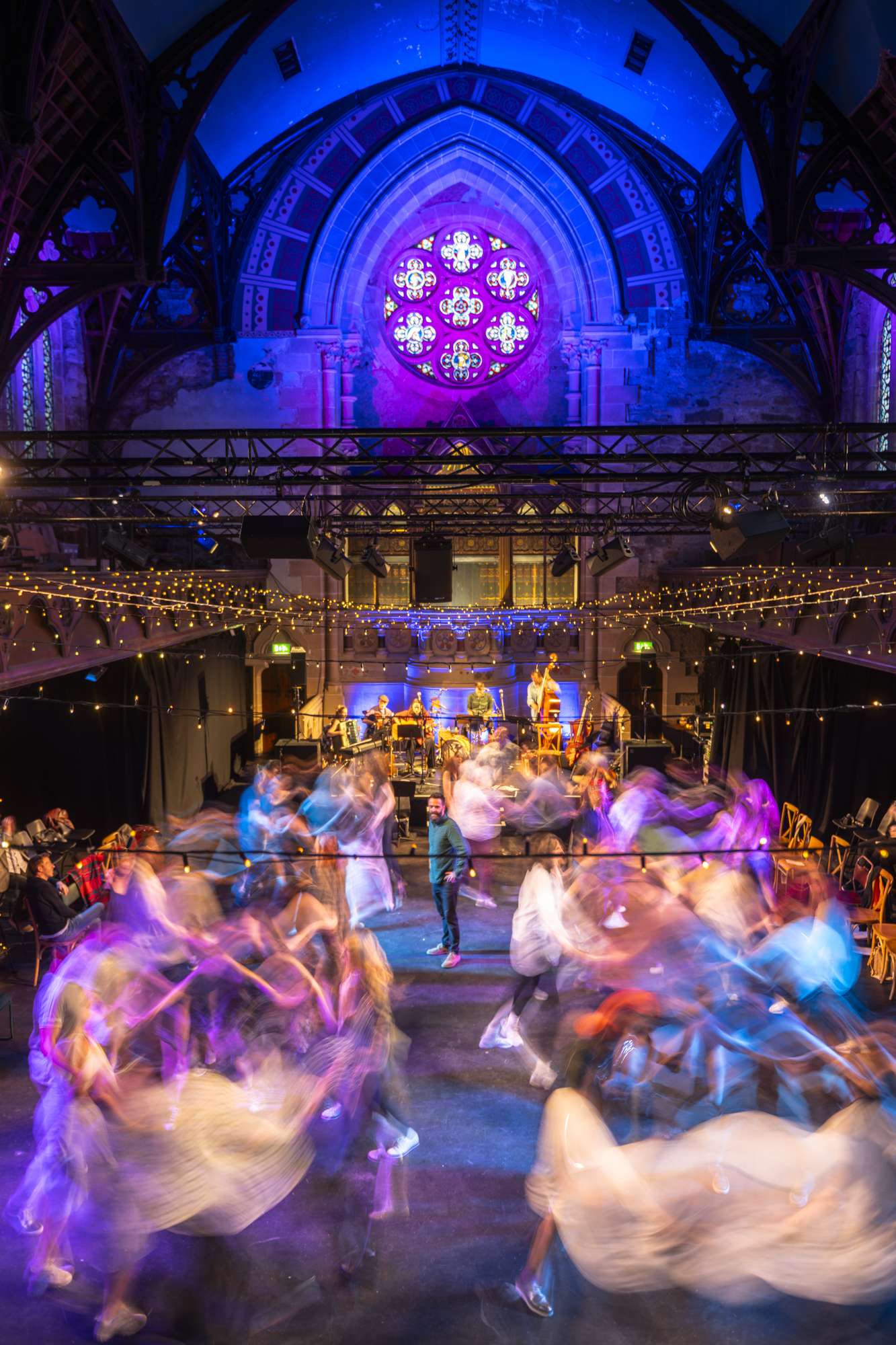 Those people will now include audience members: Ceilidh’s immersive format blurs the line between performance and party, inviting anyone to participate—if they wish. “You can join in the dances, or you can just sit and watch,” notes McKenzie, who met Gilmour when she was studying composing and he was an acting student at the Royal Conservatoire of Scotland. “Ceilidhs in Scotland are like that; I’ve been to one where there was an 80-year-old grandmother sitting on the side, having a great time.”