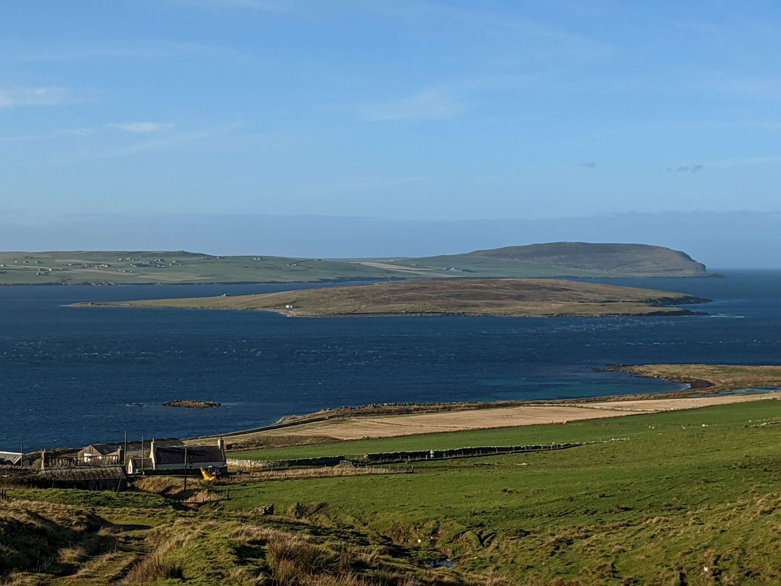 The Eynhallow Sound and the island of Eynhallow in Orkney, said to be home to the aquatic Fin-Folk in Orcadian folklore. © David C. Weinczok.