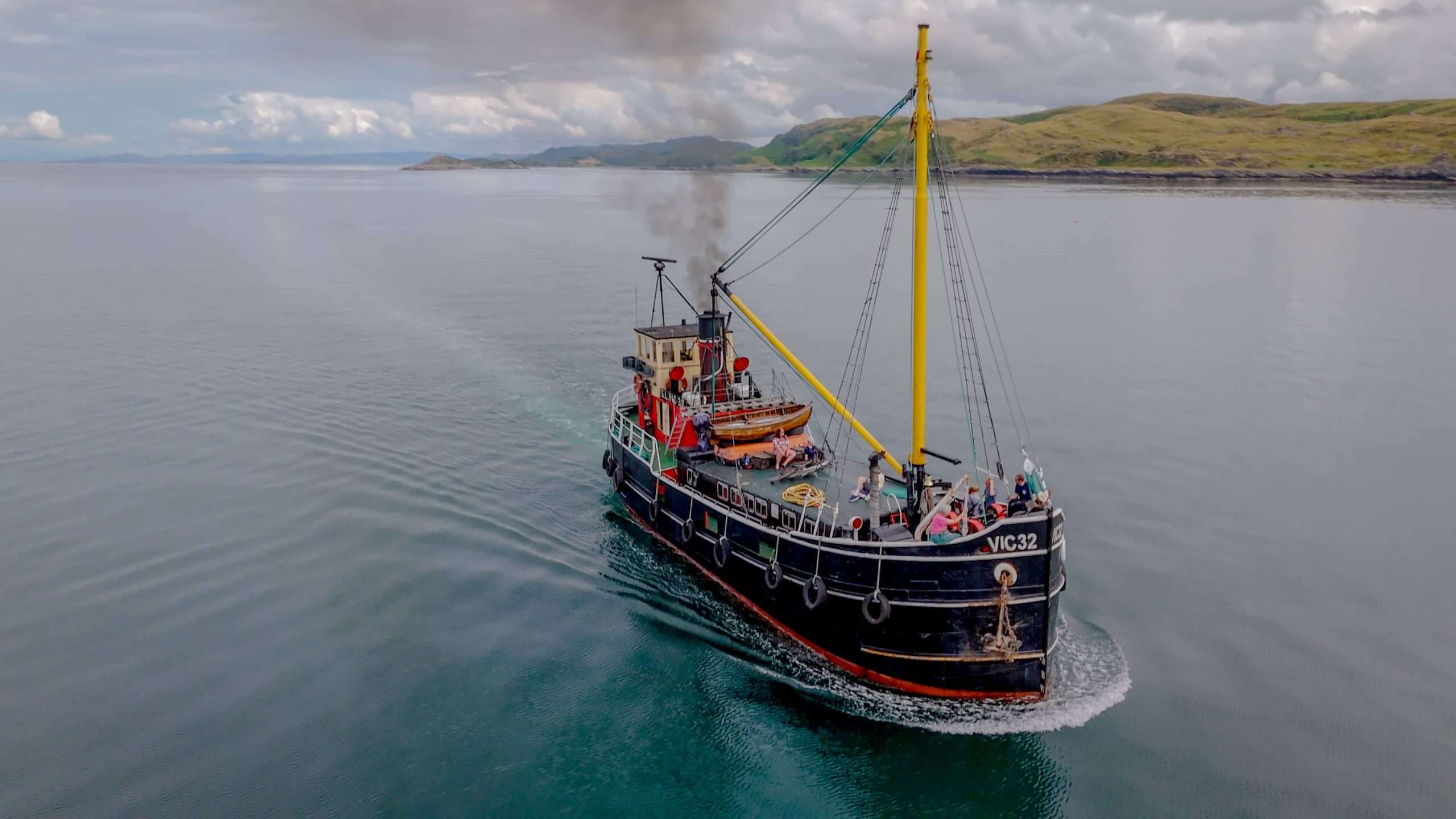 S.L. VIC 32 is one of the last iconic Clyde Puffers to operate on steam. Once a regular sight in Scottish waters delivering crucial supplies to Islanders on the West Coast of Scotland. VIC 32 was commissioned by the Admiralty, as part of a fleet of over 100, and built to carry provisions to naval vessels and depots during WWII. Unlike most of her sister ships, VIC 32 was not scrapped and was purchased by Nick and Rachel Walker in 1975. They undertook an extensive renovation to carry passengers resulting in a unique example of a steamboat that has been almost continuously cruising in West Coast waters for 45 years.